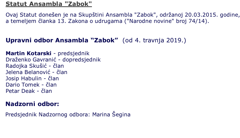 KALENDARAnsambl ZABOK CERTIFIKAT VRSNOĆE foka-KAOF-1311958. - OMLADINSKO KULTURNO-UMJETNIČKO DRUŠTVO „JOSIP DEBELJAK“ ​• 1994. - KULTURNO-UMJETNIČKO DRUŠTVO ZABOK • 2015. - ANSAMBL ZABOKSenior klub 2014Upravljanje ansamblom…